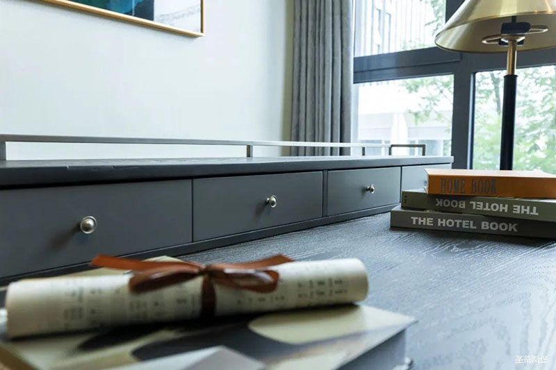 站在書房門口,都被書桌強(qiáng)大的氣場震撼,極具建筑美學(xué)的書桌四角與實(shí)木材質(zhì)質(zhì)感顯露出空間的大氣與張力,以減法設(shè)計(jì)概念,去繁求簡,卻在功能收納上絕對滿足日常所需,回歸生活本真,絕對是書房不可或缺的書桌。