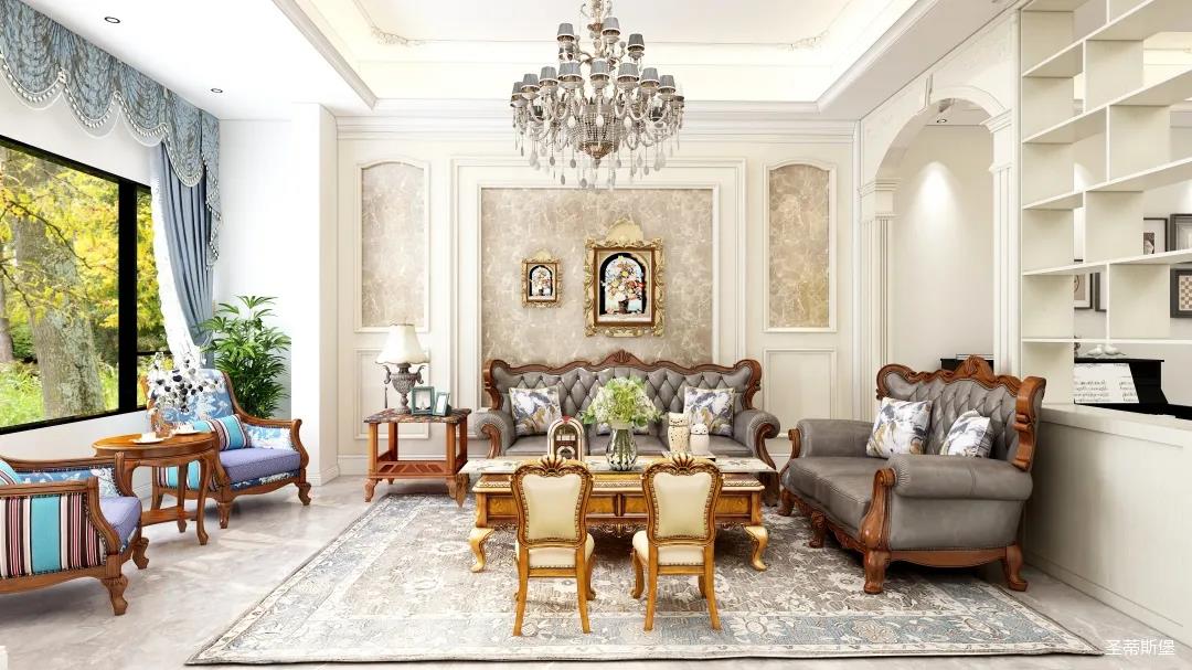 設(shè)計(jì)師將浪漫與莊嚴(yán)的氣質(zhì)從空間細(xì)節(jié)凸顯,半圓形的拱門和轉(zhuǎn)角的石砌,盡顯雍容華貴。綠植擺設(shè)清新不落俗套,白色線條使入墻空間層次感更為強(qiáng)烈,實(shí)木與歐美裝飾搭配的拱門,挑高的大面窗客廳,都令人心神蕩漾。