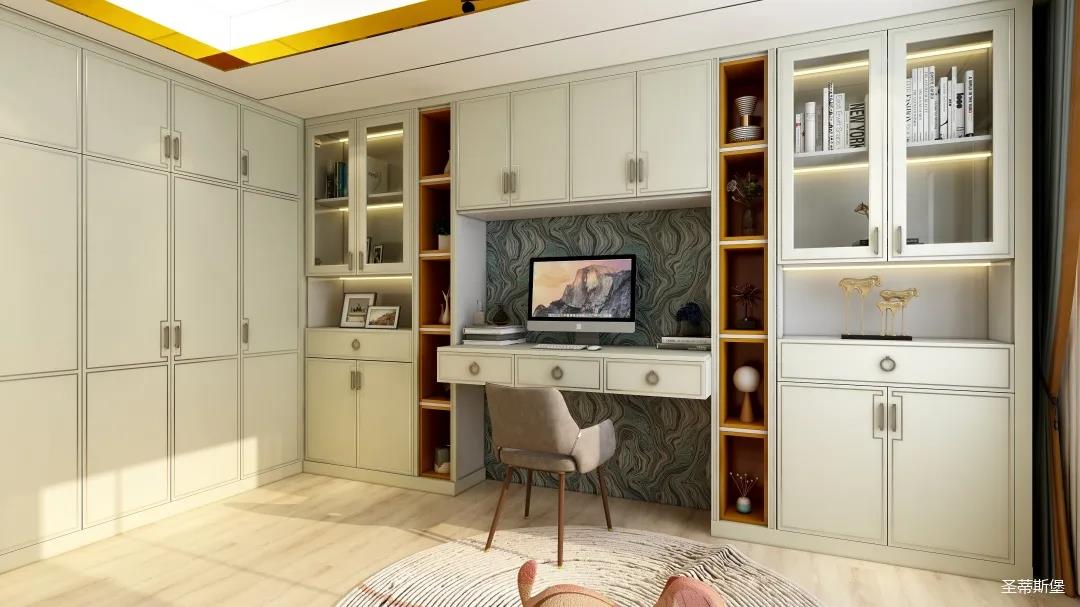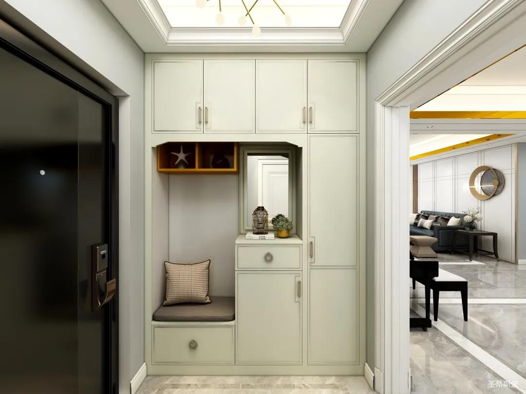 象牙白色調讓入室空間散發著溫柔的氣息,定制玄關柜上輕奢金屬線條的加持,洋溢著一種不加雕飾的美感,色澤素雅,紋理精致,于內斂沉靜中,感受入戶空間的氣質。