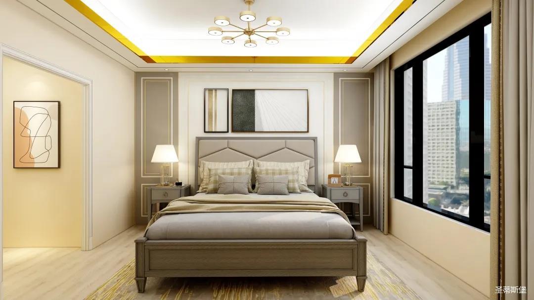 整個空間將對稱美進行到底,雖在設計思想上有所保留,但呈現的卻是一個擁有秩序感的家,高級的莫蘭迪灰與溫柔的象牙白居中搭配,優雅又治愈,能在睡眠上帶來安穩與舒適的張力。