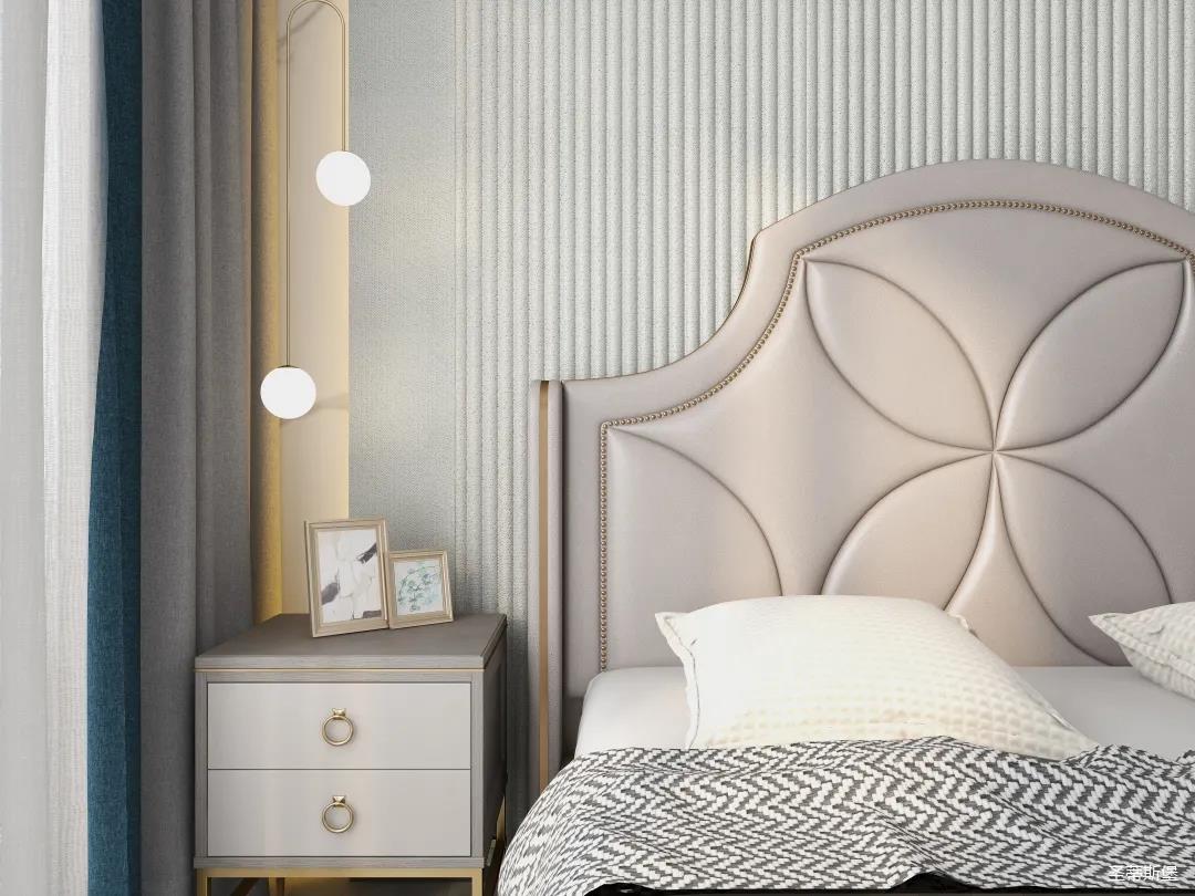 材質的交替與光影的變換,具有濃濃的現代簡奢色彩 。 獨一無二的英倫爵士灰定制柜,由延邊鑲嵌的香檳金拉絲金屬分割,線條流暢且奢華,不僅代表著時尚,也崇尚了實木韻味。設計師將現代、實用、精致的藝術設計風格應用其中,更是精致生活方式的藝術演繹。在平靜的空間中表現出獨特的藝術骨感,滿足我們對精致生活的精神追求。