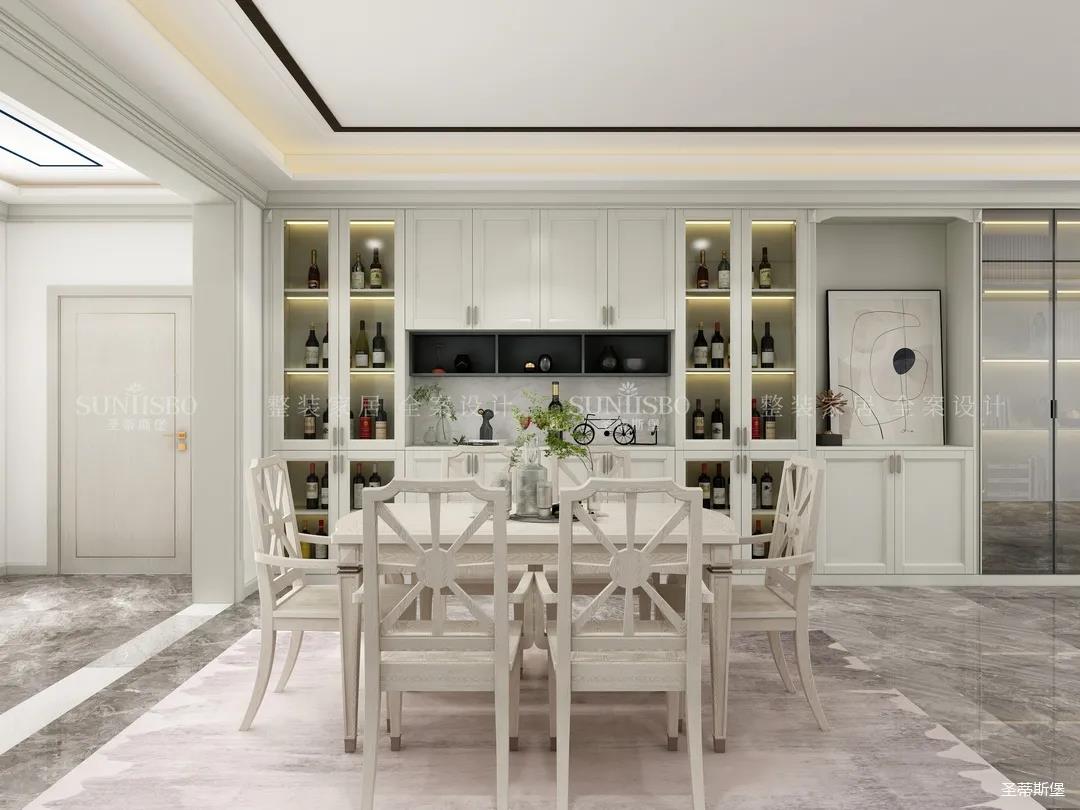 客廳根據(jù)業(yè)主太太的喜好,以輕奢高級質(zhì)感為基調(diào),將美式的浪漫氣息融入其中,摒棄了濃墨重彩,在不同材質(zhì)的點綴下,有的全是自然的氣息,客廳頂面也沒有繁雜的吊頂裝飾,自然光源就足以讓家明亮不少。閑暇之余,在此小酌一杯,好不愜意~
