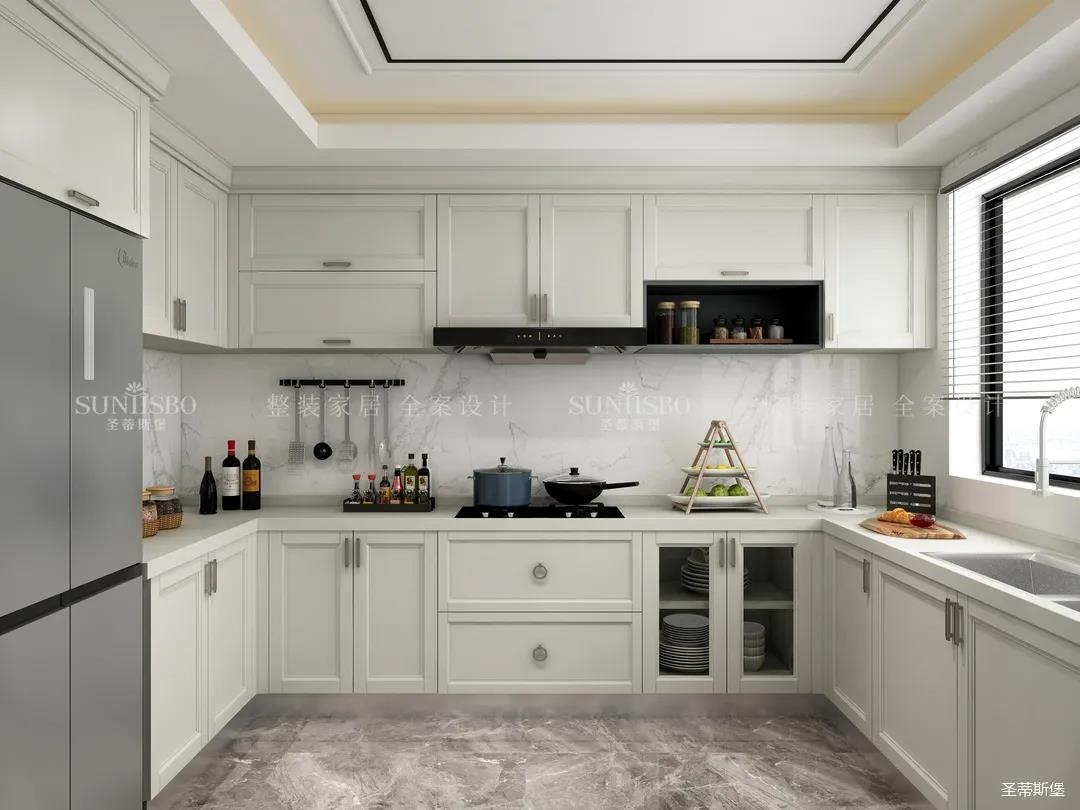 廚房從屋主的飲食習(xí)慣出發(fā),運用溫柔的莫蘭迪色彩(仿古白)打開了美式櫥柜定制的新世界!在美式輕奢的基調(diào)上,進(jìn)行線面模塊的靈活組合,在滿足廚房基本需求的同時也將儲物優(yōu)勢傳達(dá)到每一細(xì)節(jié)處。