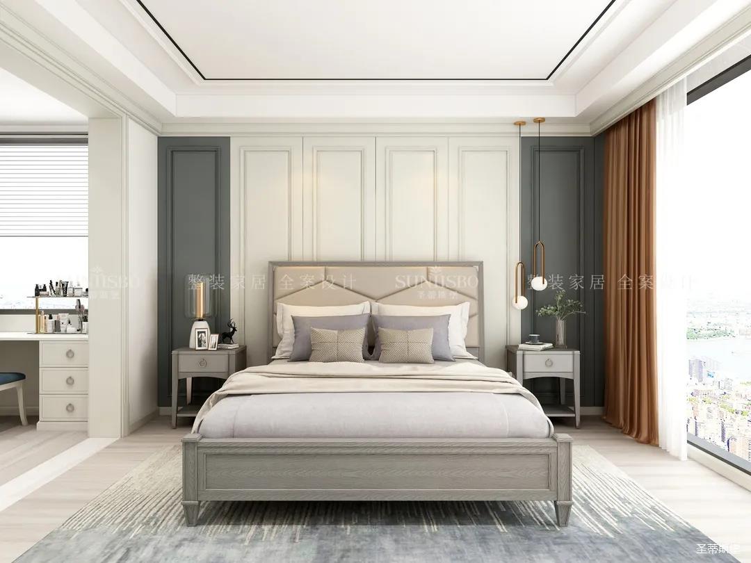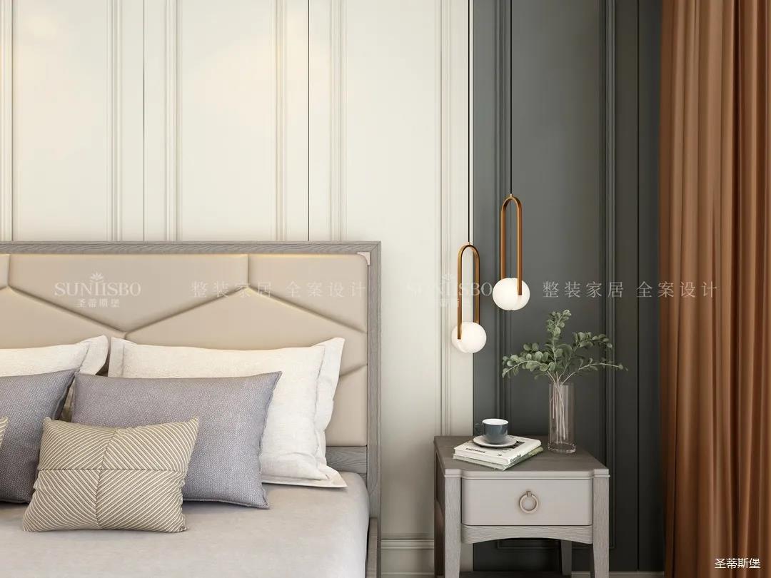 主臥在最大程度上表達(dá)了業(yè)主太太最愛的線性美,背景木飾面保留了純粹的視覺體驗,深灰與米白按比例調(diào)和搭配,深淺碰撞,在跟隨時尚的同時,也形成了秩序感的層次劃分。