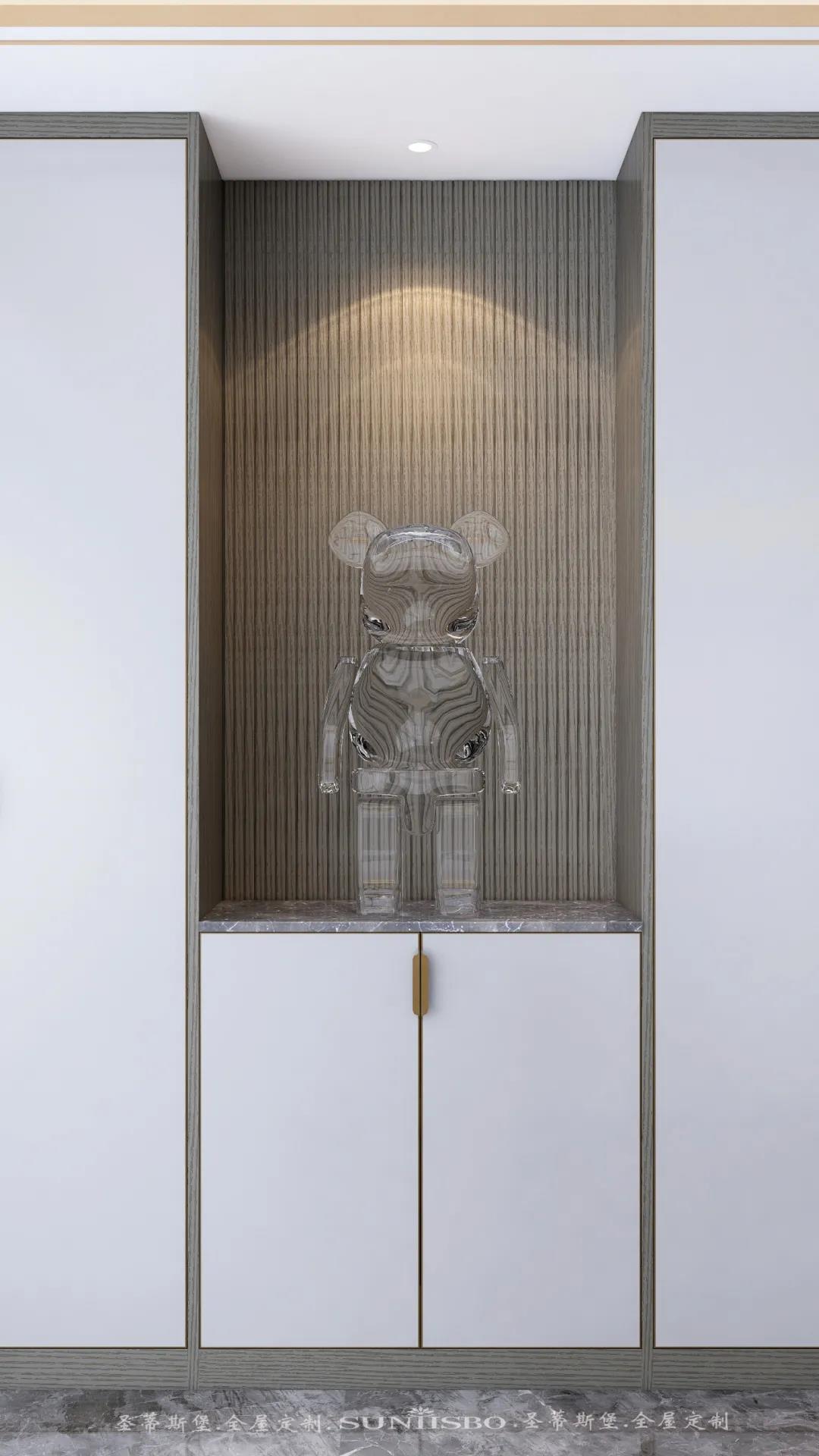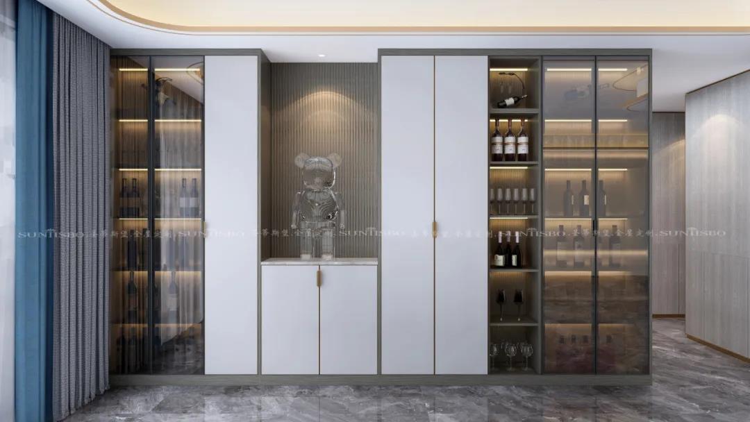 在細節設計之中,設計師以實木+紋理,營造一派簡約輕奢之感,看似沒有繁雜的元素修飾,卻讓家多了一份高級感。
