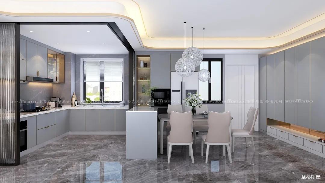 ▲英倫仿古灰的定制柜體在復古中給空間增添了一份高貴感。