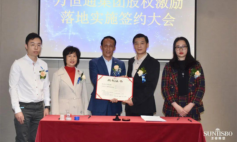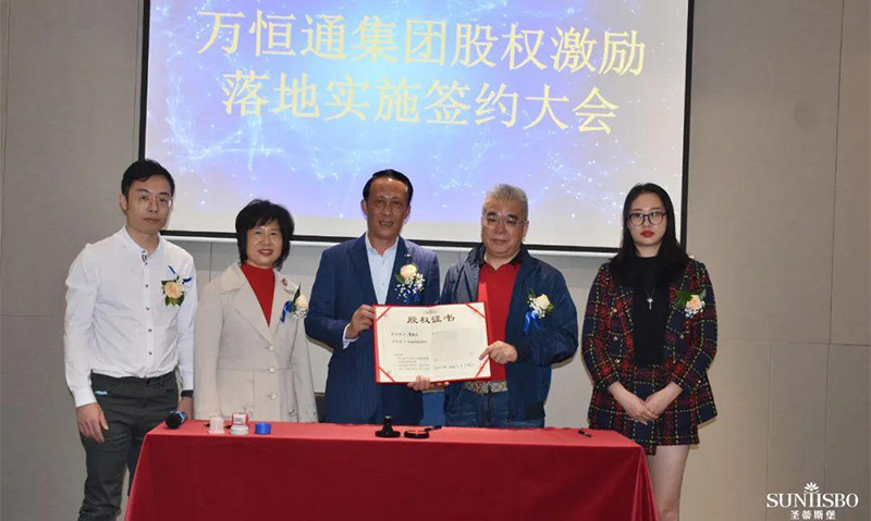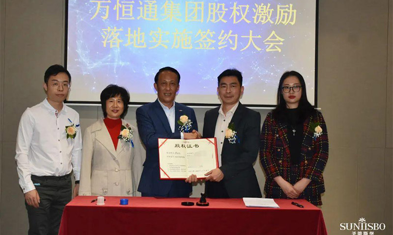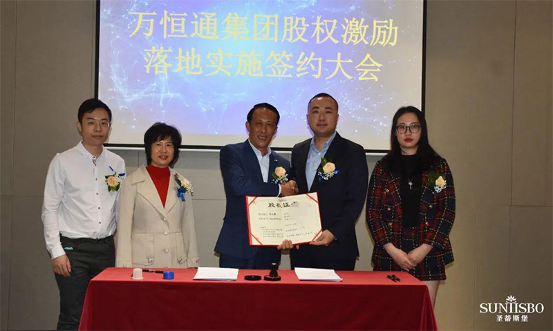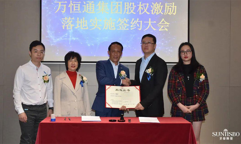 必一通集團(tuán)執(zhí)行董事及法人代表王浩基先生正式為第一期六位虛擬受限股股東授予榮譽(yù)證書并簽訂股權(quán)分配協(xié)議。