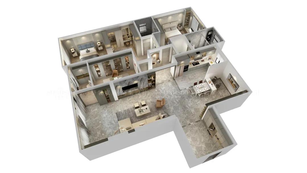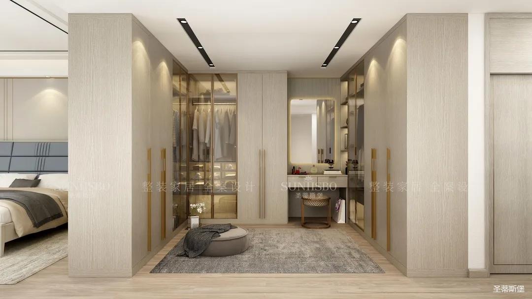 4. 主臥設置U型衣帽間,區(qū)分衣物收納。