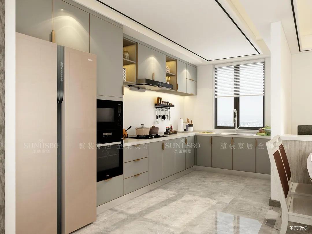 2. 打通廚房和餐廳,餐桌旁設置西廚區(qū)域。