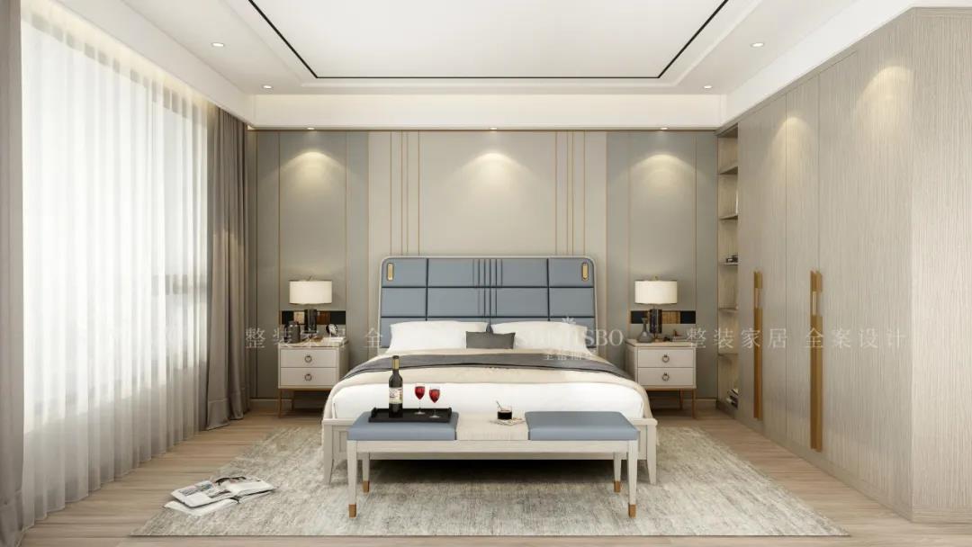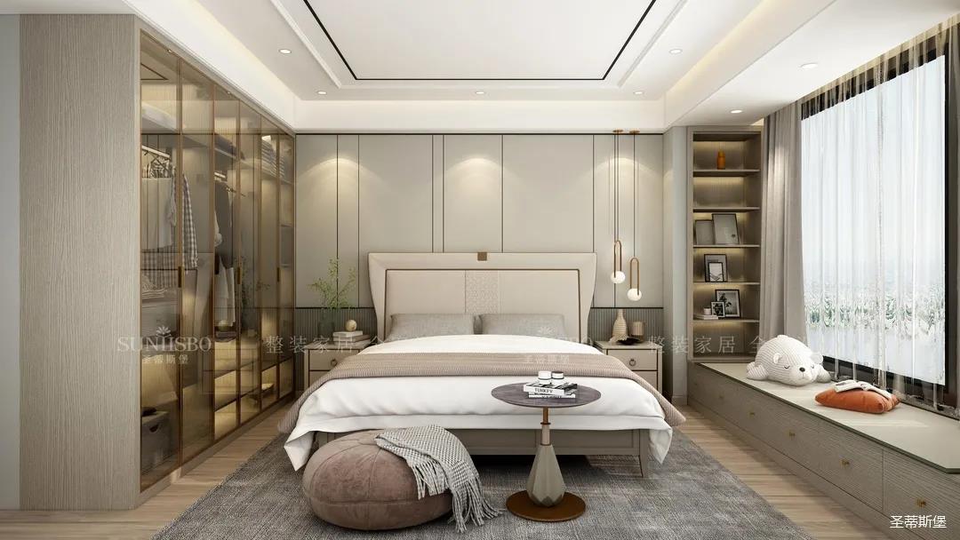寬闊的就寢區(qū)搭配定制實木飄窗,將空間的舒適感達到極致。