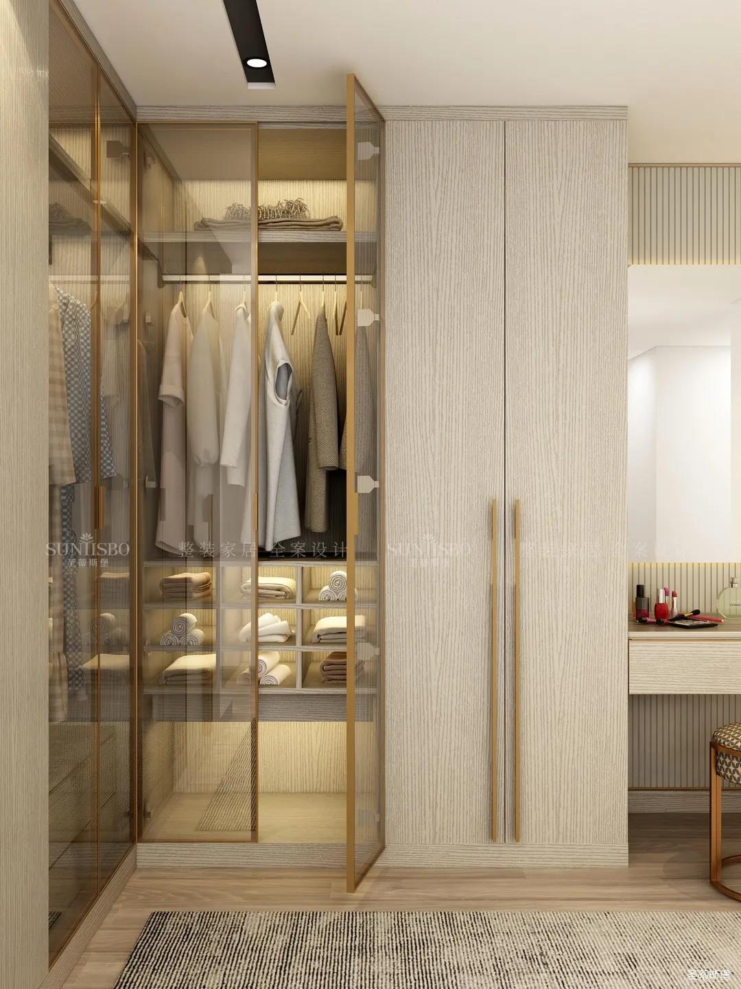 玻璃增加了衣柜的通透性,視覺上更為干凈整潔。