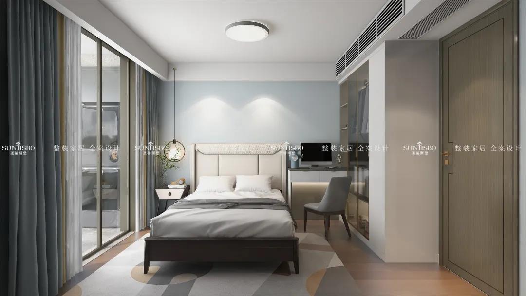 次臥是業(yè)主給爸爸媽媽預留的老人房,整體感覺都是比較沉穩(wěn)的,配色方面也是容易助眠的顏色,真的是非常貼心啦~
