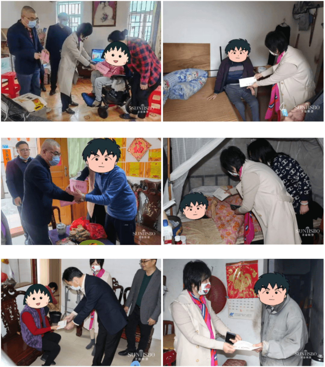 寒冬臘月,春節將至。2022年1月17、18日,必一通集團副董事長梁碧霞女士親自帶領集團員工分別前往常平土塘社區、虎門鎮赤崗社區、虎門鎮南面社區,探望慰問孤寡老人、殘疾人和社區壽星,并為他們送去了春節禮品和慰問金,為他們送去一年一度的新春關懷和溫暖。在疫情的嚴防中,讓他們體會到社會和企業的悉心關懷,感受到別樣溫暖的春節氛圍。